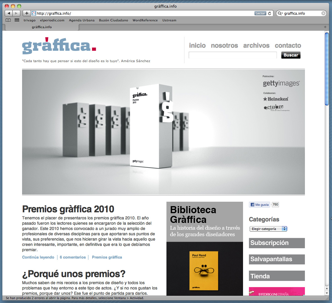 En Julio de 2010 fuimos invitados a formar parte del jurado de los primeros Premios Gràffica. Además, recibimos por parte de la organización, el encargo de diseñar el trofeo que recibirán los ganadores de esta y futuras ediciones de un certamen que aspira a convertirse en referente a nivel nacional.Próximamente los primeros ganadores tendrán nuestro trabajo en sus manos y poco a poco y año tras año lo irán recibiendo más, lo que nos hace estar muy orgullosos del trabajo realizado. Gracias a Victor y Ana por confiar en nosotros, y a Getty Images y Heineken por hacerlo posible.